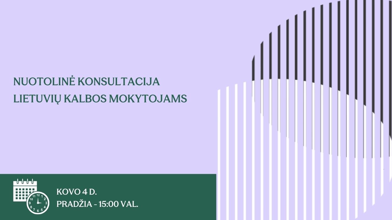 Kovo 4 d. 15.00 val. organizuojama nuotolinė konsultacija „Pasirengimas 8 klasės lietuvių kalbos ir literatūros NMPP“, kurioje bus aptarti klausimai: užduočių pobūdis ir struktūra, turinys ir vertinimas, pasidalijimas metodinėmis įžvalgomis.